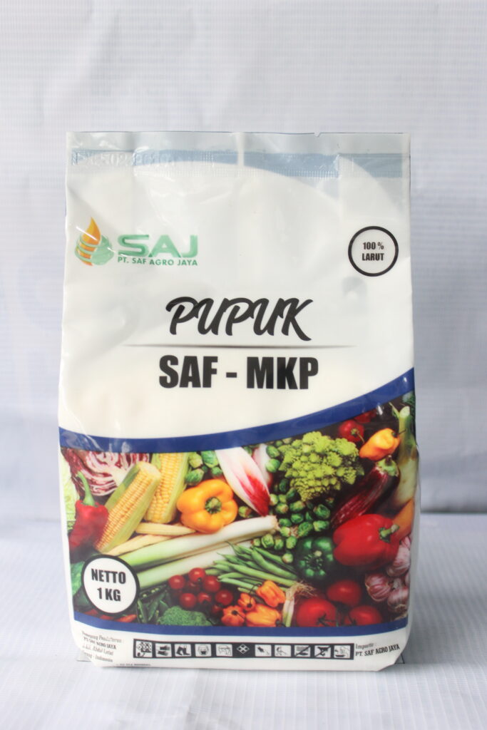 SAF – MKP Merupakan posphat pada saf – mkp bisa merangsang pertumbuhan serta kaliumnya untuk mengingkatkan tanaman dan buah sehingga dapat memperepat pembungaan danmenguatkan bunga agar tidak dapat gagal tumbuh dan gugur. Saf – MKP bisa digunakan untuk semua jenis tanaman, baik tanaman tahunan, musiman, maupun genjah dan juga untuk perkebunan dan tanaman yang di tanam di green house. SAF – MKP merupakan pupuk kristal yang dapat larut 100% dalam air sehingga mudah untuk diaplikasikannya.